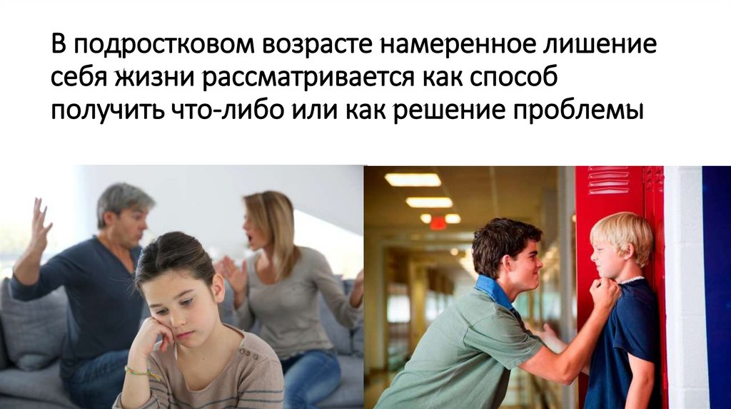 В подростковом возрасте намеренное лишениесебя жизни рассматривается как способ