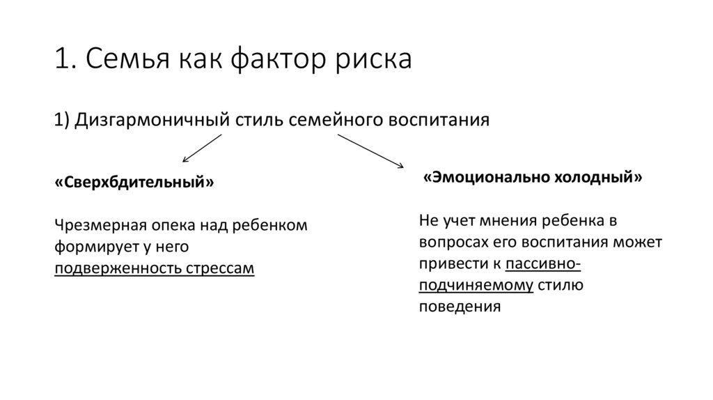 1. Семья как фактор риска1) Дизгармоничный стиль семейного воспитания