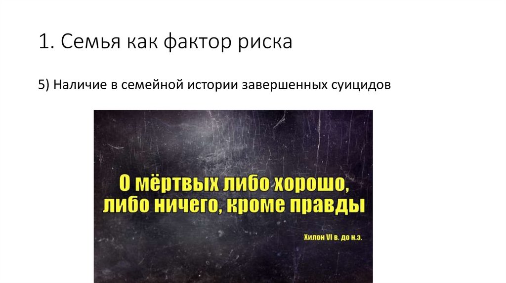 1. Семья как фактор риска5) Наличие в семейной истории завершенных суицидов