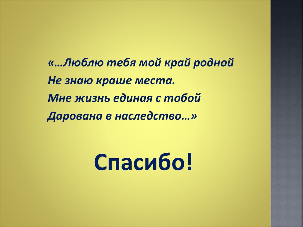 «…Люблю тебя мой край роднойНе знаю краше места.
