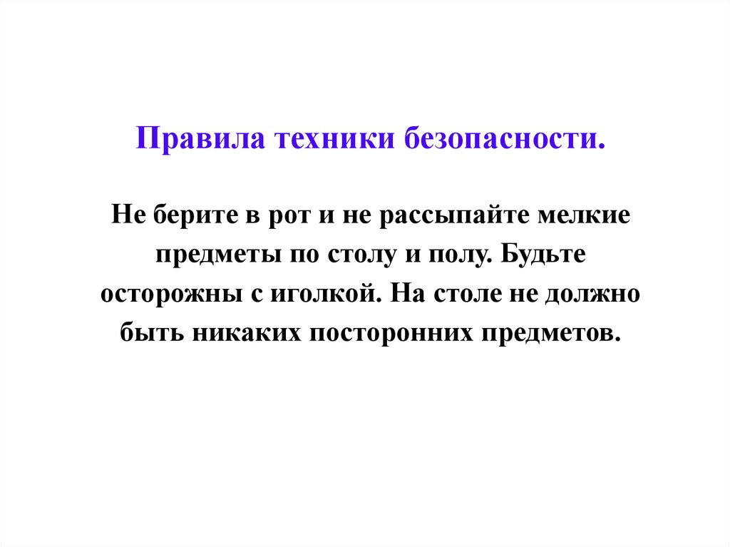 Правила техники безопасности.Не берите в рот и не рассыпайте мелкие