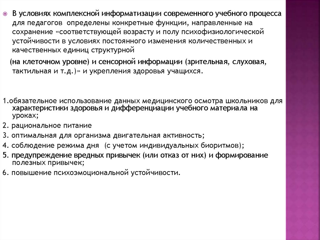 1.обязательное использование данных медицинского осмотра школьников для