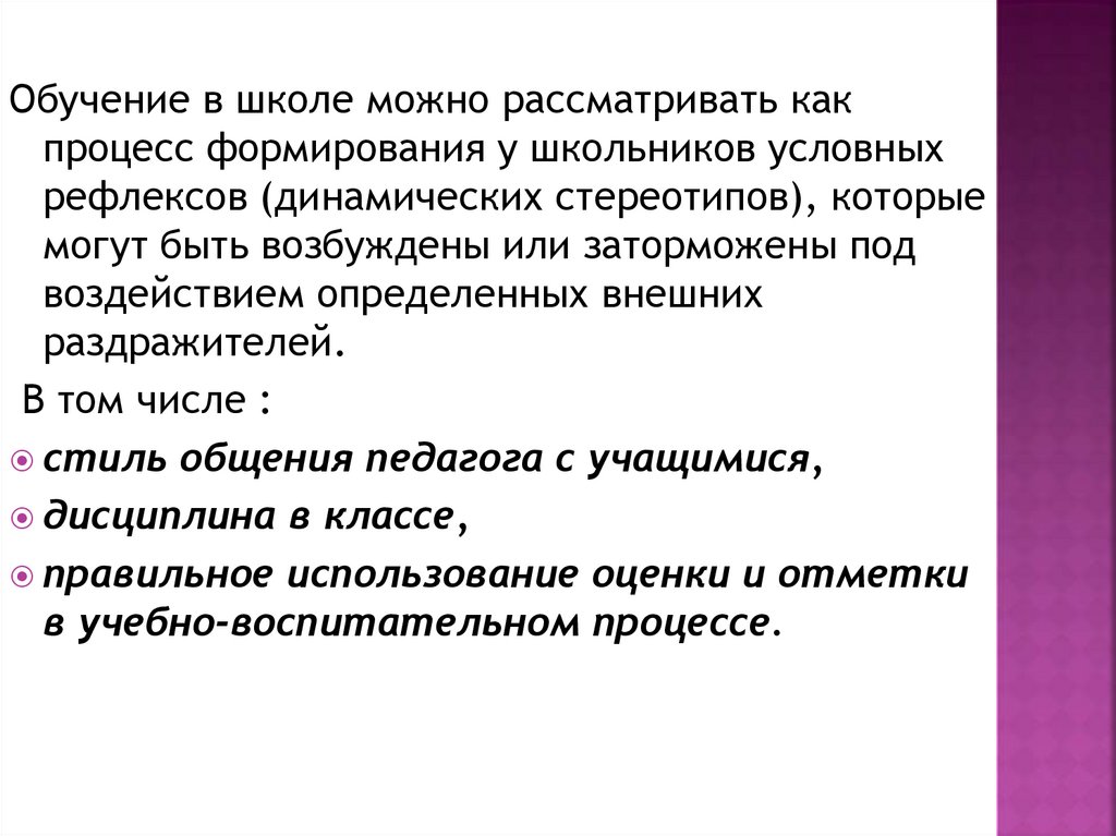 рефлексов (динамических стереотипов), которые