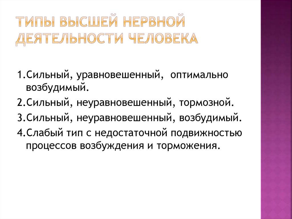 2.Сильный, неуравновешенный, тормозной.