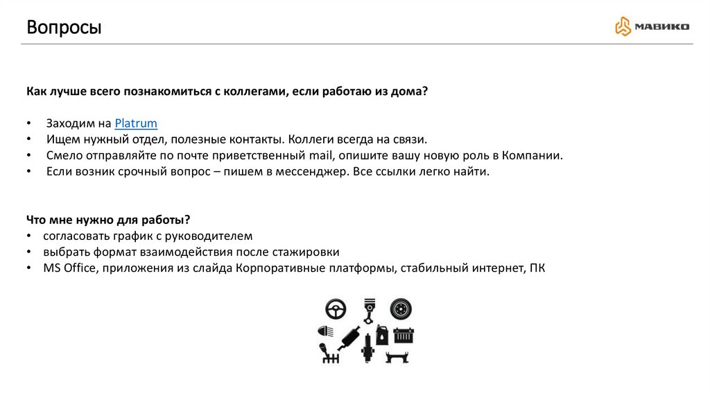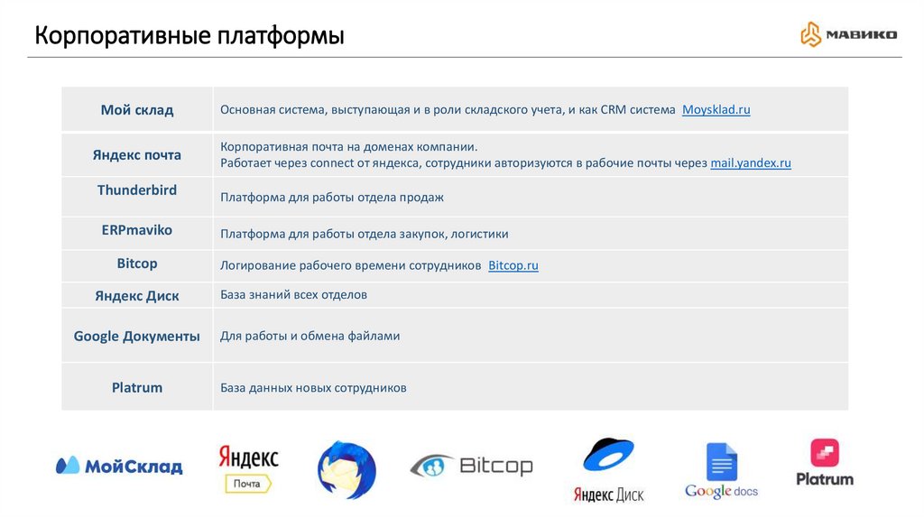 • MS Office, приложения из слайда Корпоративные платформы, стабильный интернет, ПК