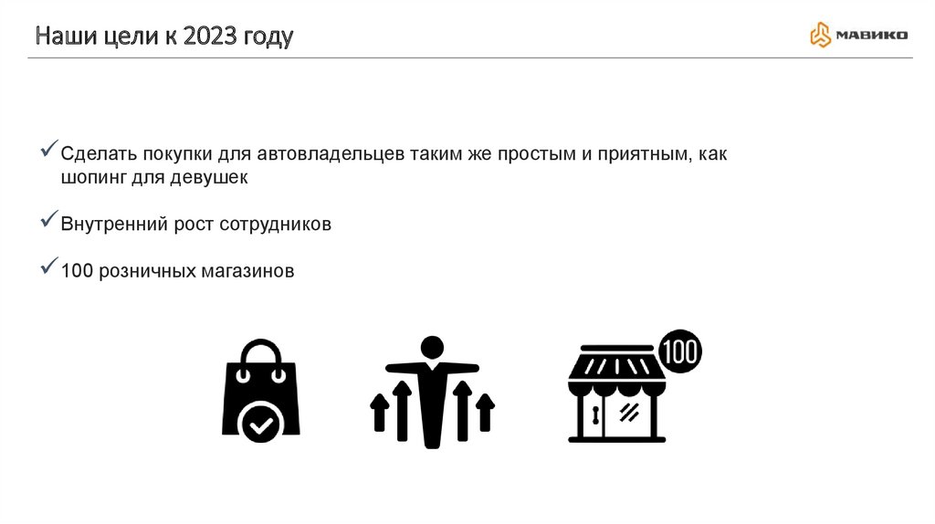 Наши цели к 2023 годуСделать покупки для автовладельцев таким же простым и приятным, как