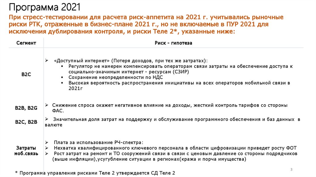 Программа 2021При стресс-тестировании для расчета риск-аппетита на 2021 г. учитывались рыночные