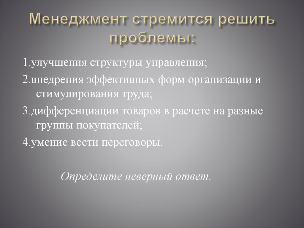 1.улучшения структуры управления;2.внедрения эффективных форм организации и