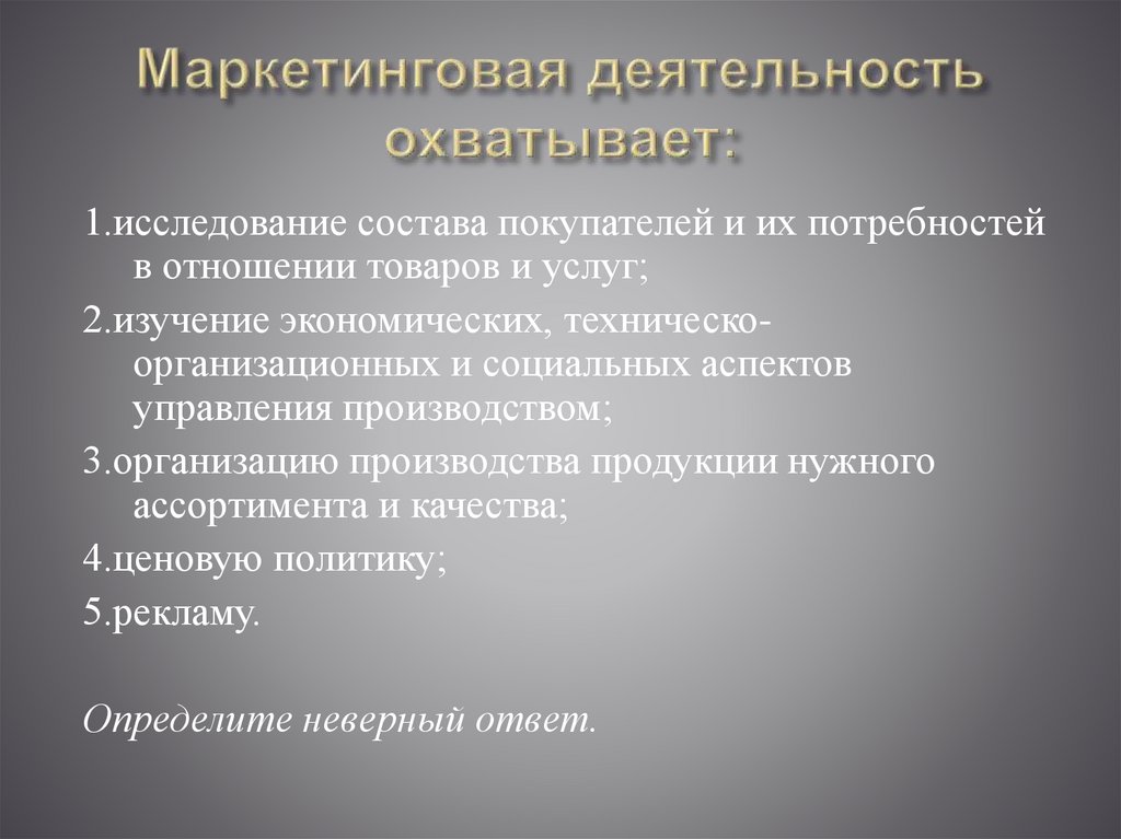 1.исследование состава покупателей и их потребностейв отношении товаров и услуг;