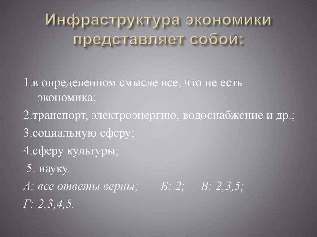 2.транспорт, электроэнергию, водоснабжение и др.;