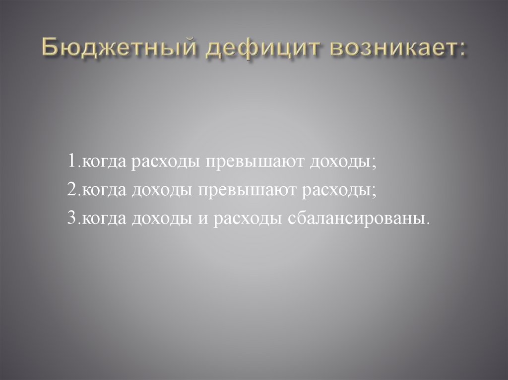 1.когда расходы превышают доходы;2.когда доходы превышают расходы;