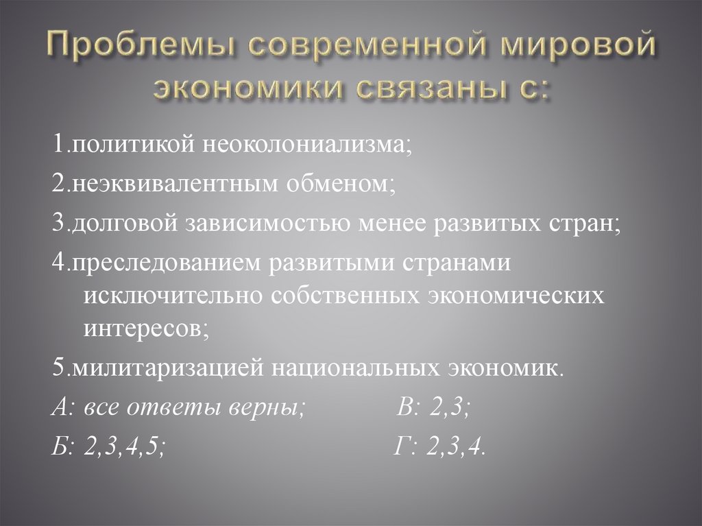 1.политикой неоколониализма;2.неэквивалентным обменом;