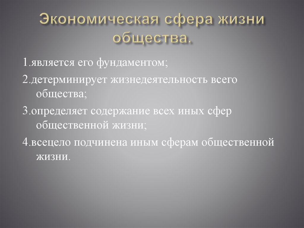 1.является его фундаментом;2.детерминирует жизнедеятельность всего
