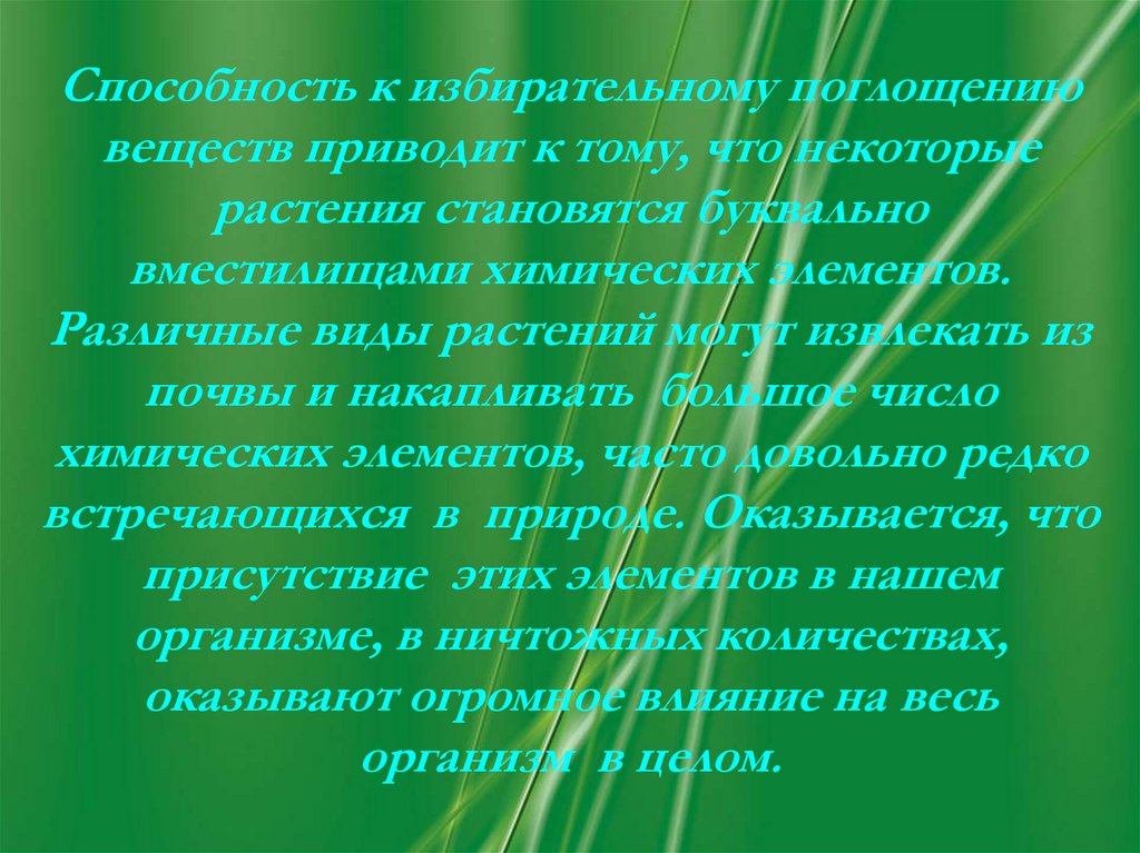 Способность к избирательному поглощениювеществ приводит к тому, что некоторые