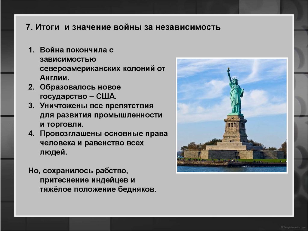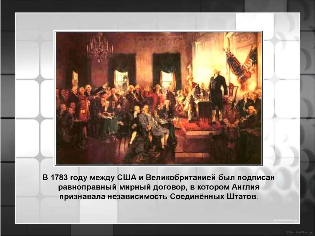 В 1783 году между США и Великобританией был подписанравноправный мирный договор, в котором Англия