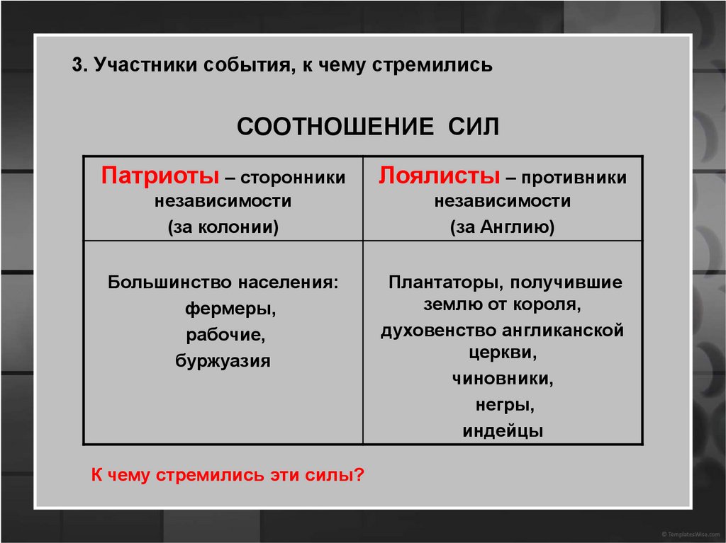 3. Участники события, к чему стремилисьСООТНОШЕНИЕ СИЛ