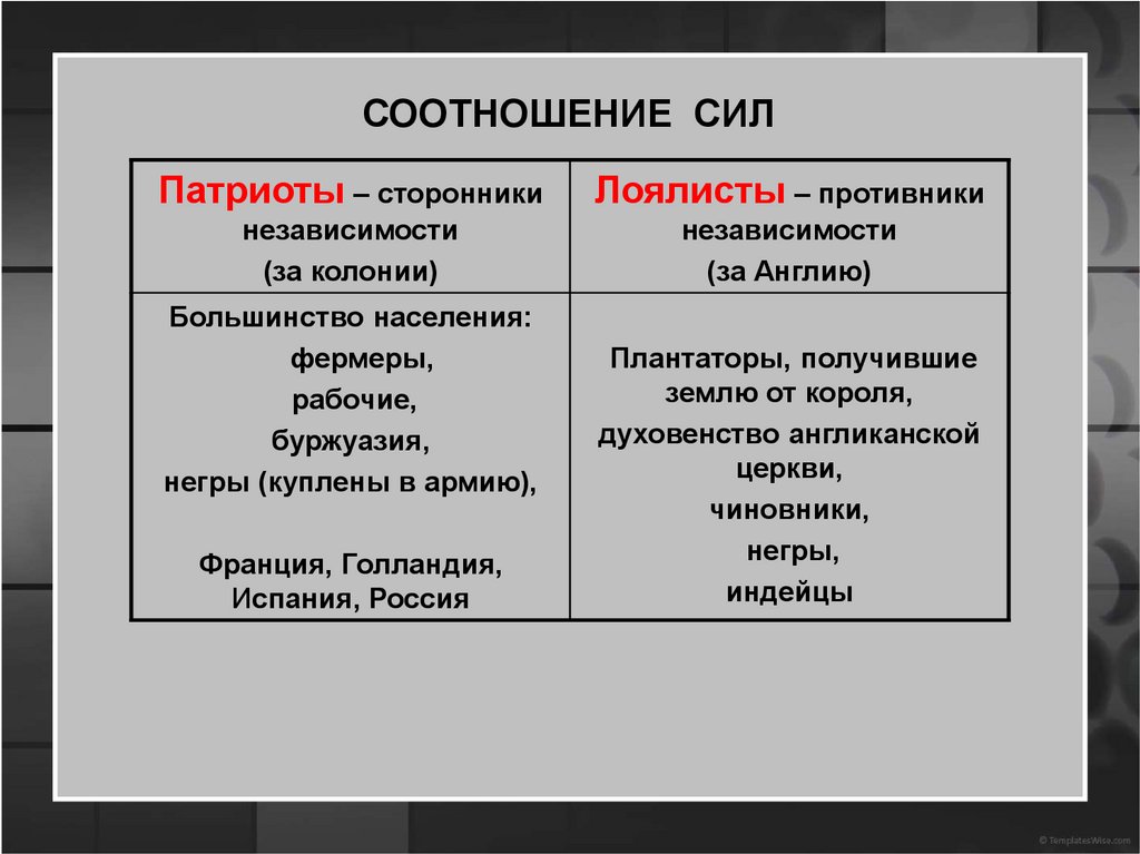 СООТНОШЕНИЕ СИЛПатриоты – сторонники