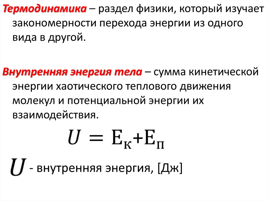 Термодинамика – раздел физики, который изучаетзакономерности перехода энергии из одного