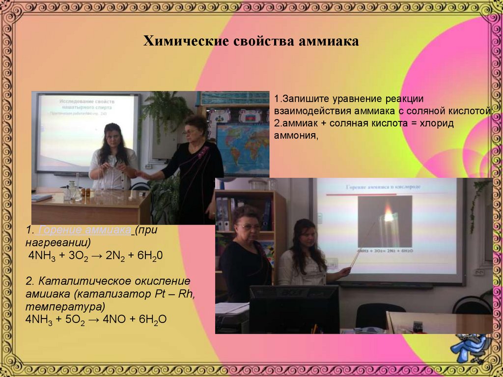 Химические свойства аммиака1.Запишите уравнение реакции