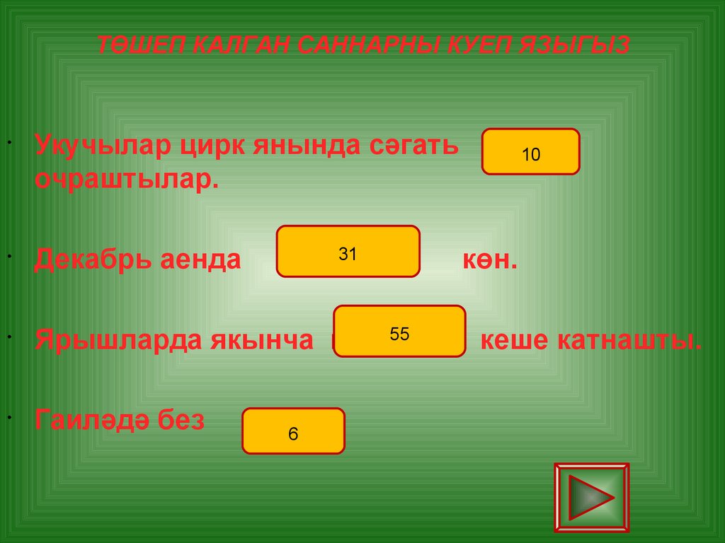 ТӨШЕП КАЛГАН САННАРНЫ КУЕП ЯЗЫГЫЗУкучылар цирк янында сәгать