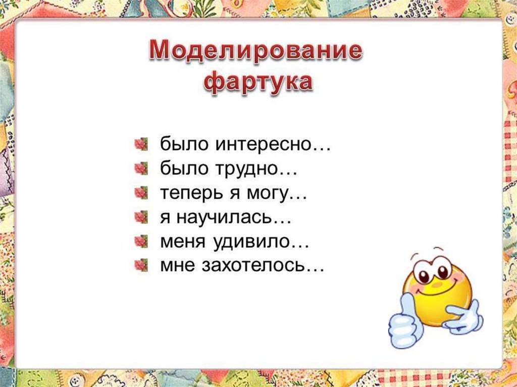 Открытый урок по технологии "Моделирование фартука"