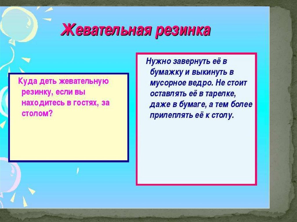 жевательную резинку. Это — местная