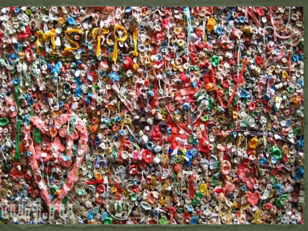 достопримечательность. Стена залеплена резинкой в