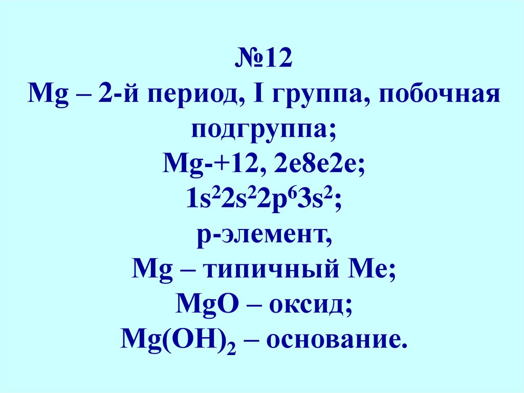 №12Мg – 2-й период, I группа, побочная