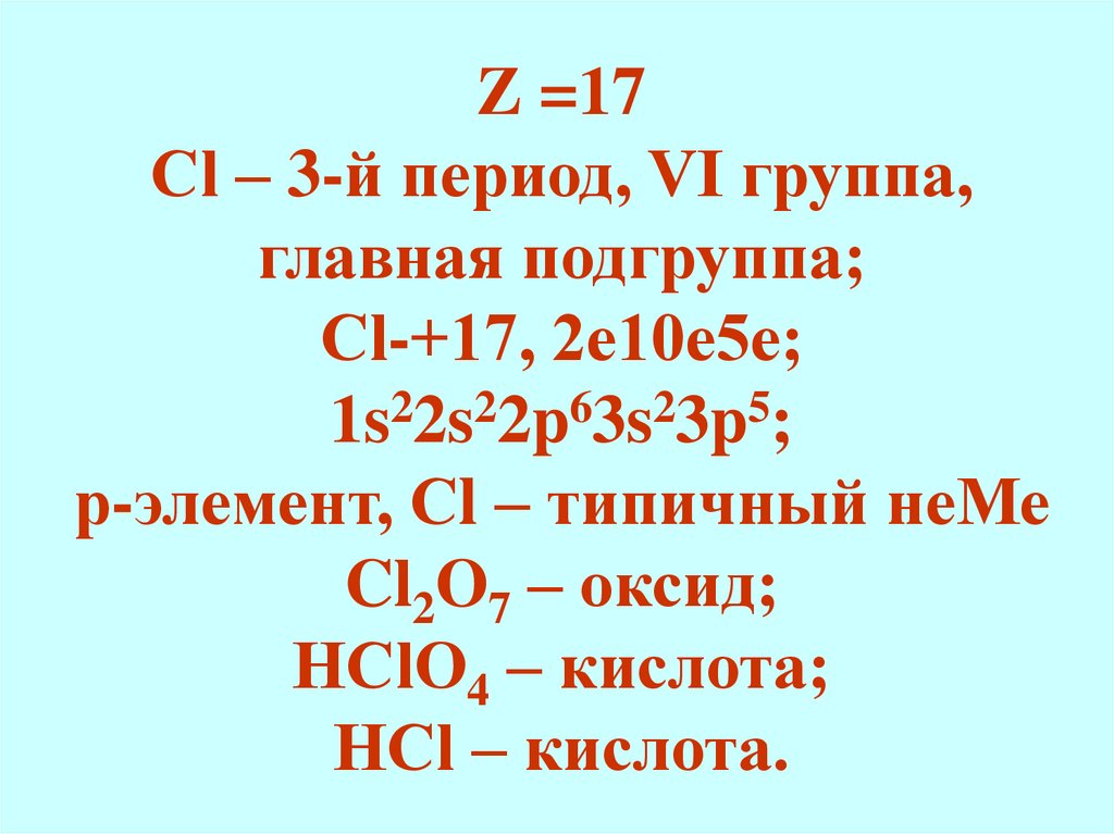 Z =17Сl – 3-й период, VI группа,