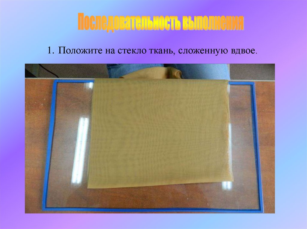 1. Положите на стекло ткань, сложенную вдвое.12.