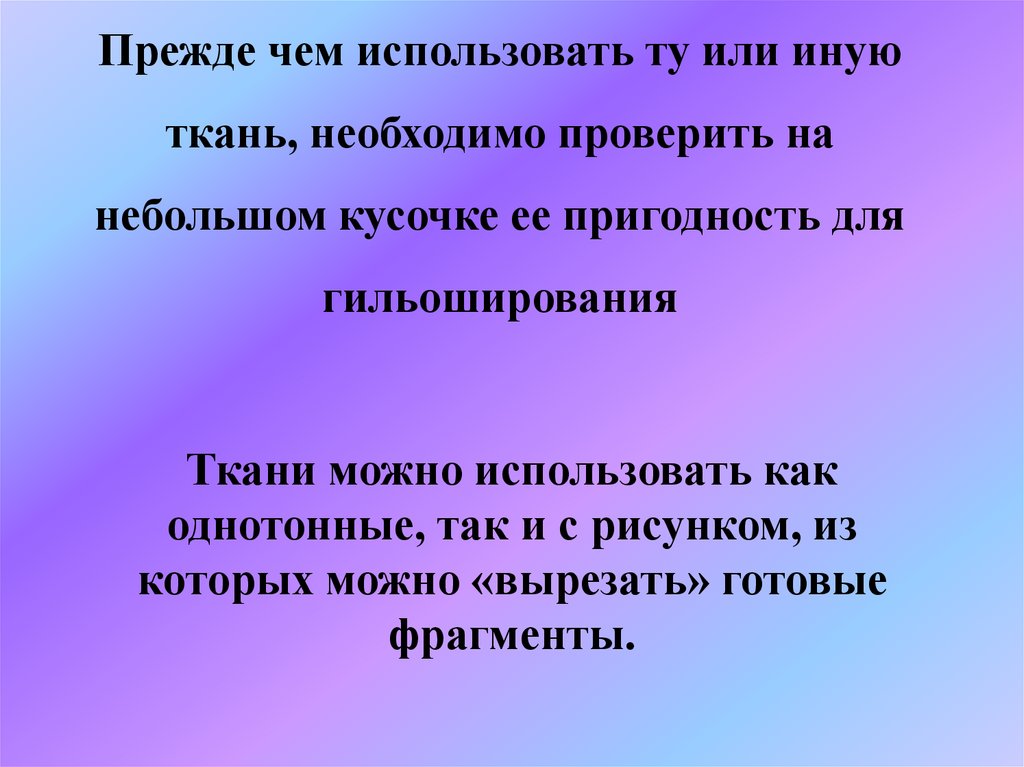 Прежде чем использовать ту или инуюткань, необходимо проверить на