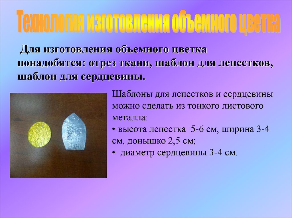Для изготовления объемного цветкапонадобятся: отрез ткани, шаблон для лепестков,