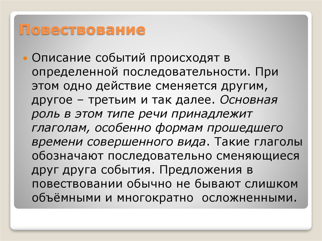 повествовании обычно не бывают слишком