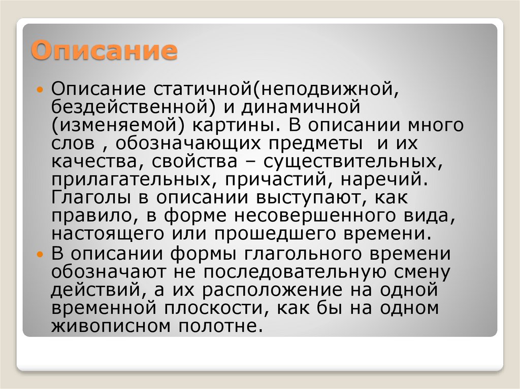 Глаголы в описании выступают, как