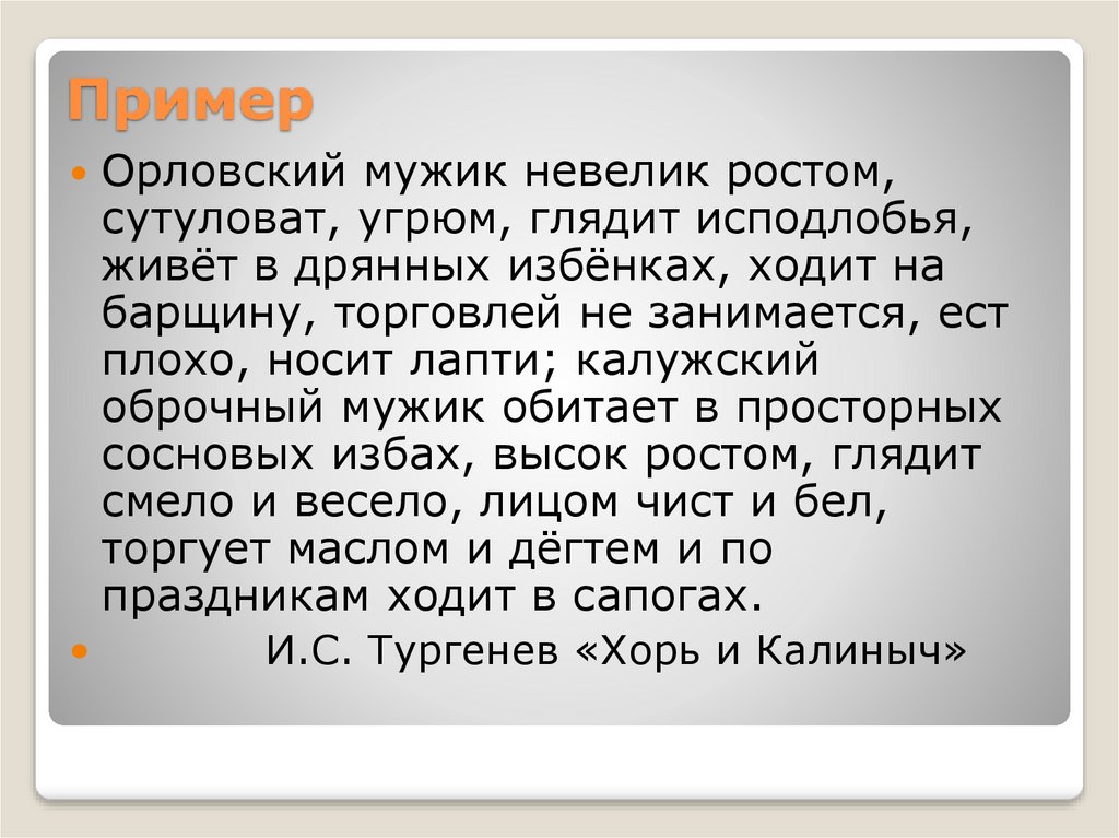 ПримерОрловский мужик невелик ростом,