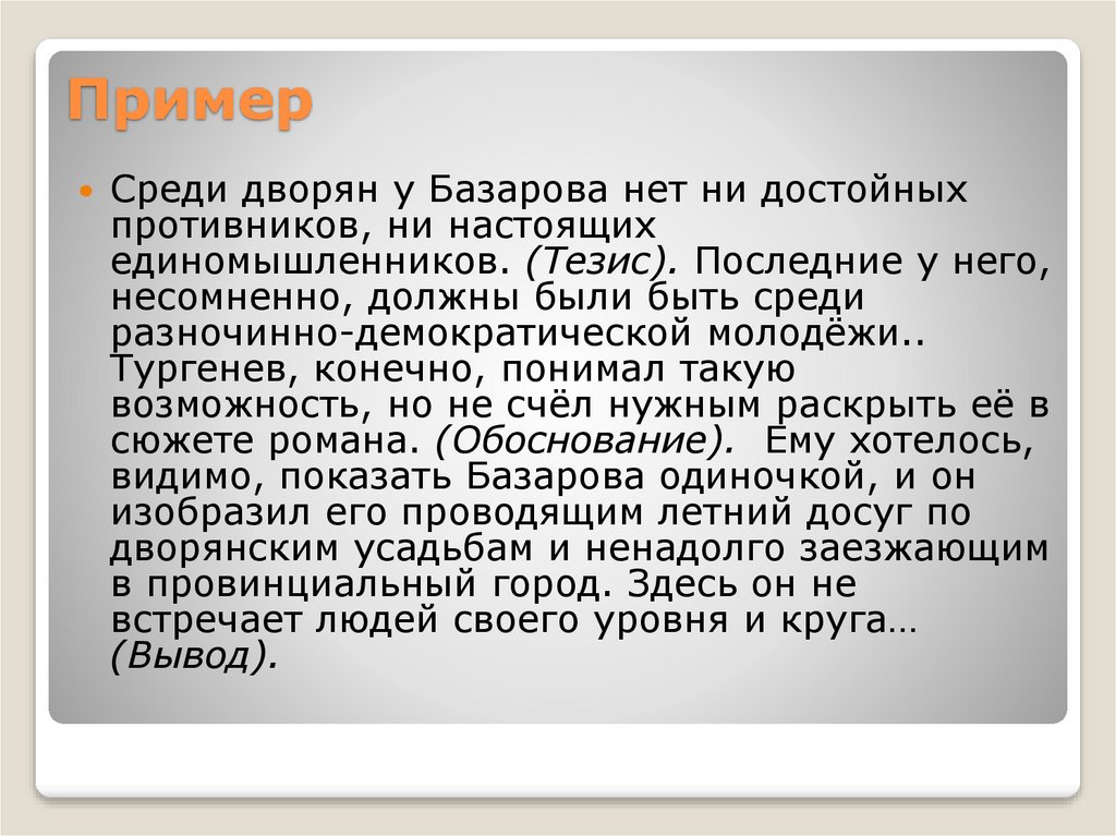 ПримерСреди дворян у Базарова нет ни достойных