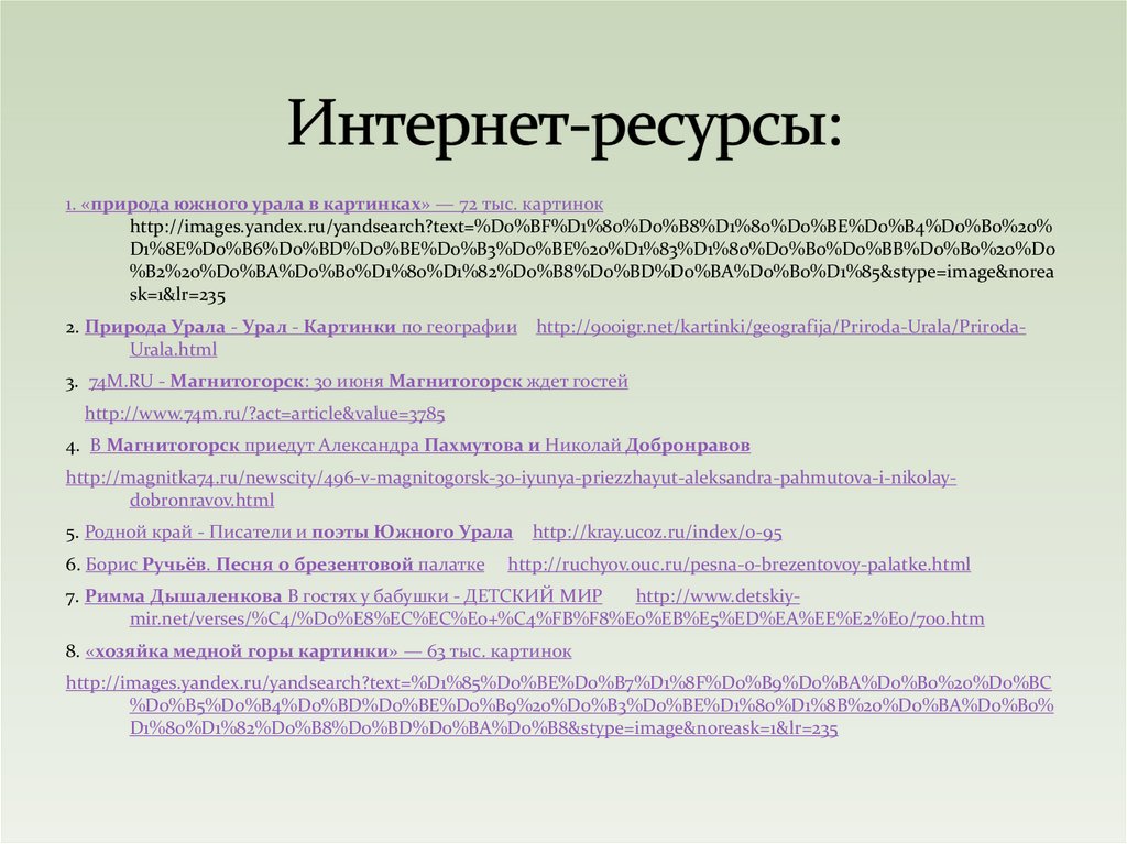 1. «природа южного урала в картинках» — 72 тыс. картинокhttp://images.yandex.ru/yandsearch?text=%D0%BF%D1%80%D0%B8%D1%80%D0%BE%D0%B4%D0%B0%20%