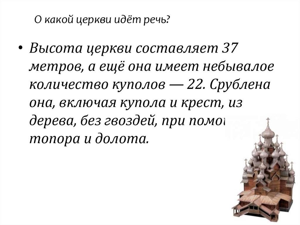 О какой церкви идёт речь?• Высота церкви составляет 37