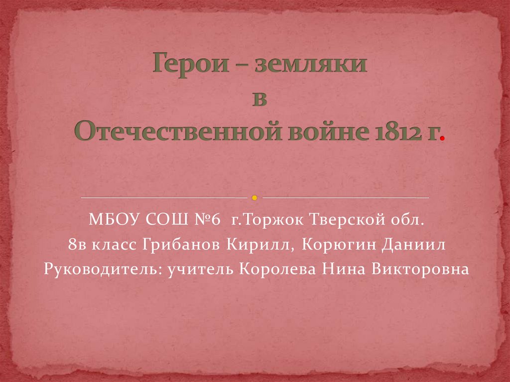 Герои-земляки в Отечественной войне 1812 г