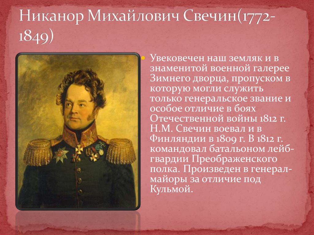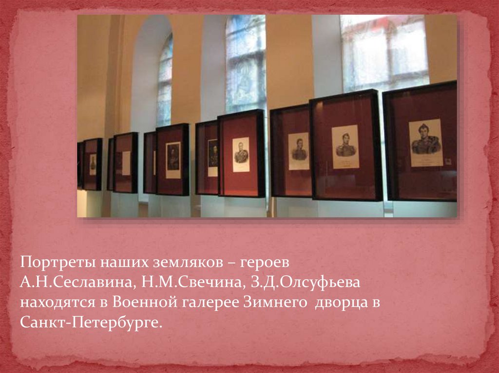 Портреты наших земляков – героевА.Н.Сеславина, Н.М.Свечина, З.Д.Олсуфьева