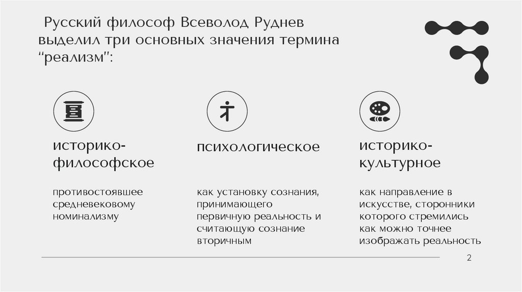 Русский философ Всеволод Рудневвыделил три основных значения термина
