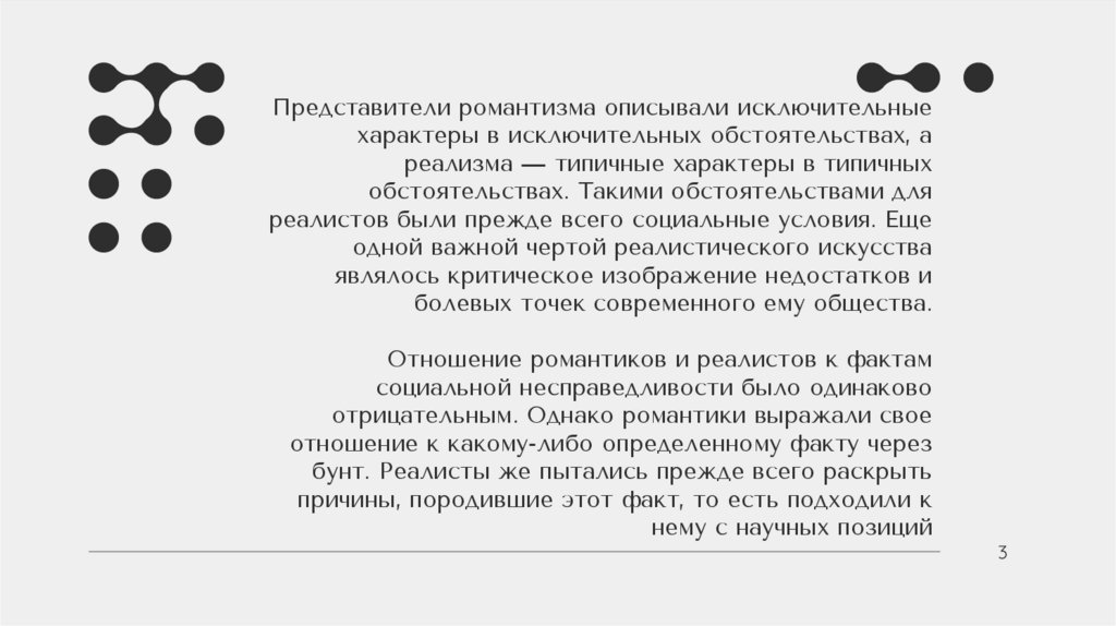 Представители романтизма описывали исключительныехарактеры в исключительных обстоятельствах, а