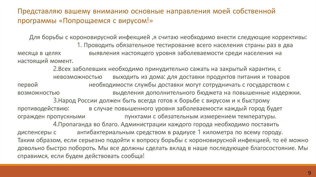 Для борьбы с короновирусной инфекцией ,я считаю необходимо внести следующие коррективы: