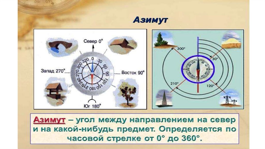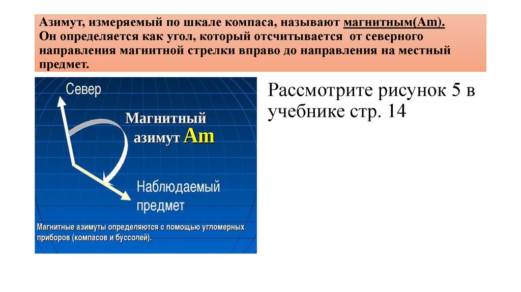 Азимут, измеряемый по шкале компаса, называют магнитным(Аm).Он определяется как угол, который отсчитывается от северного