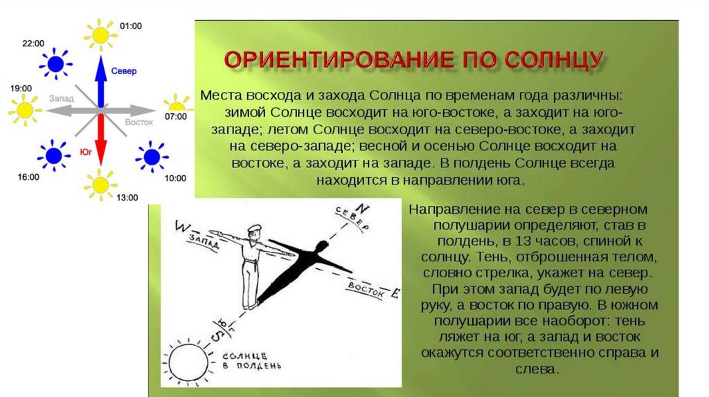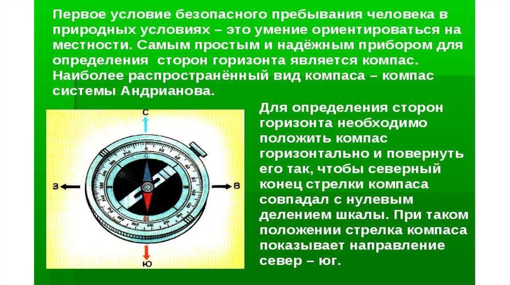 рельеф, находить нужное направление движения и выдерживать его в пути.