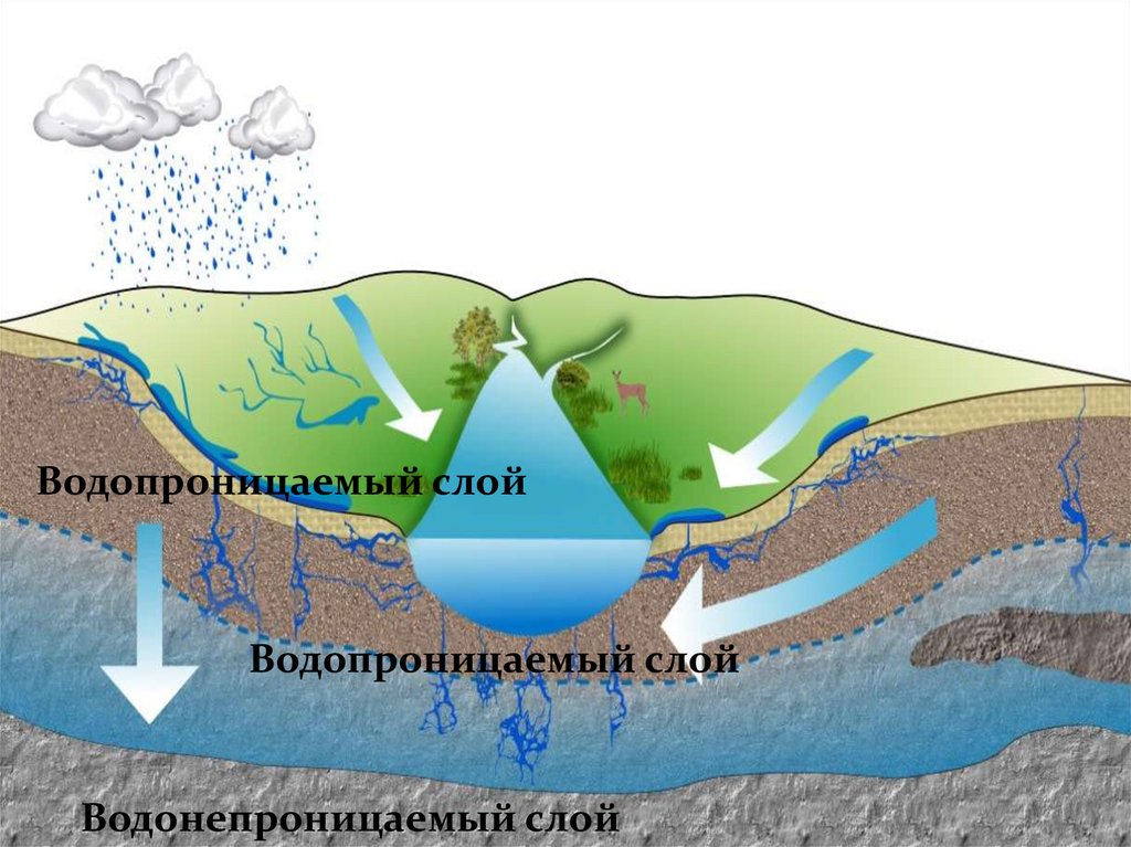 Вода просачивается сквозь водопроницаемые породы.