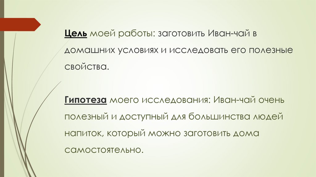 Цель моей работы: заготовить Иван-чай вдомашних условиях и исследовать его полезные