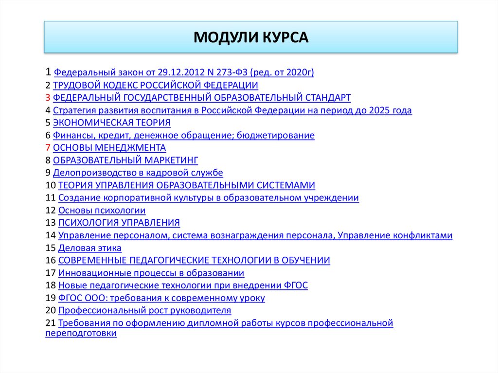 МОДУЛИ КУРСА1 Федеральный закон от 29.12.2012 N 273-ФЗ (ред. от 2020г)