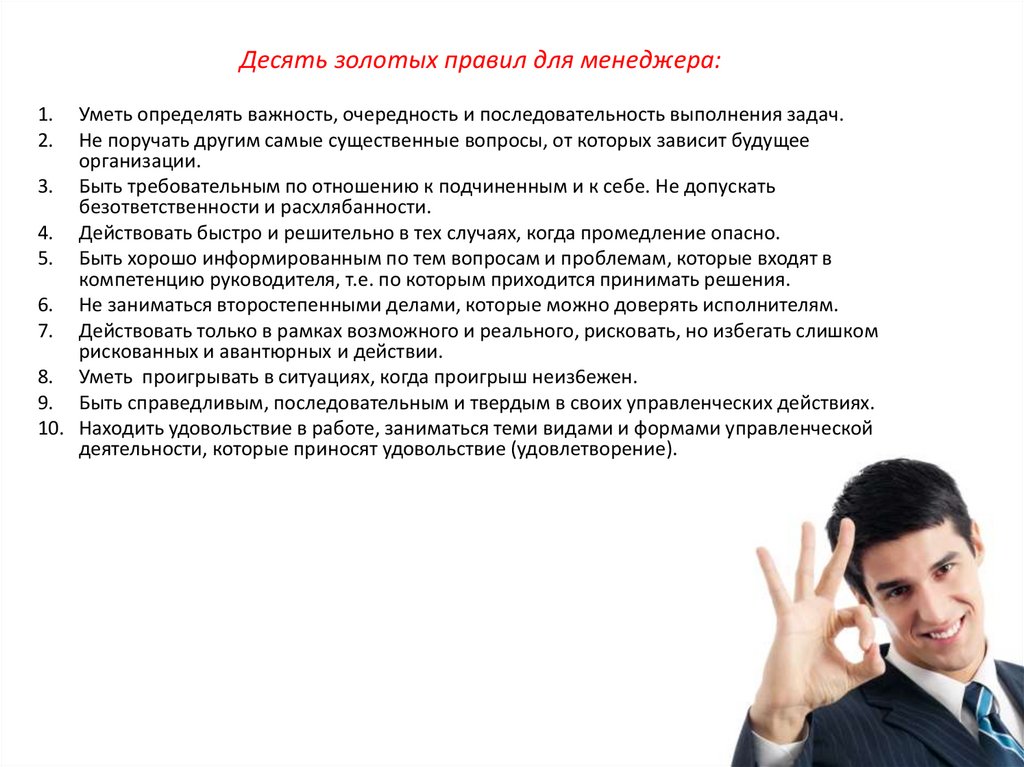 Десять золотых правил для менеджера:1.