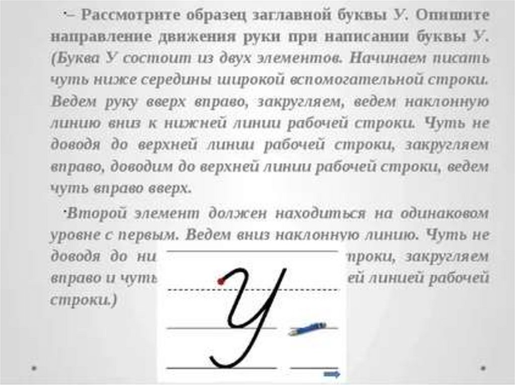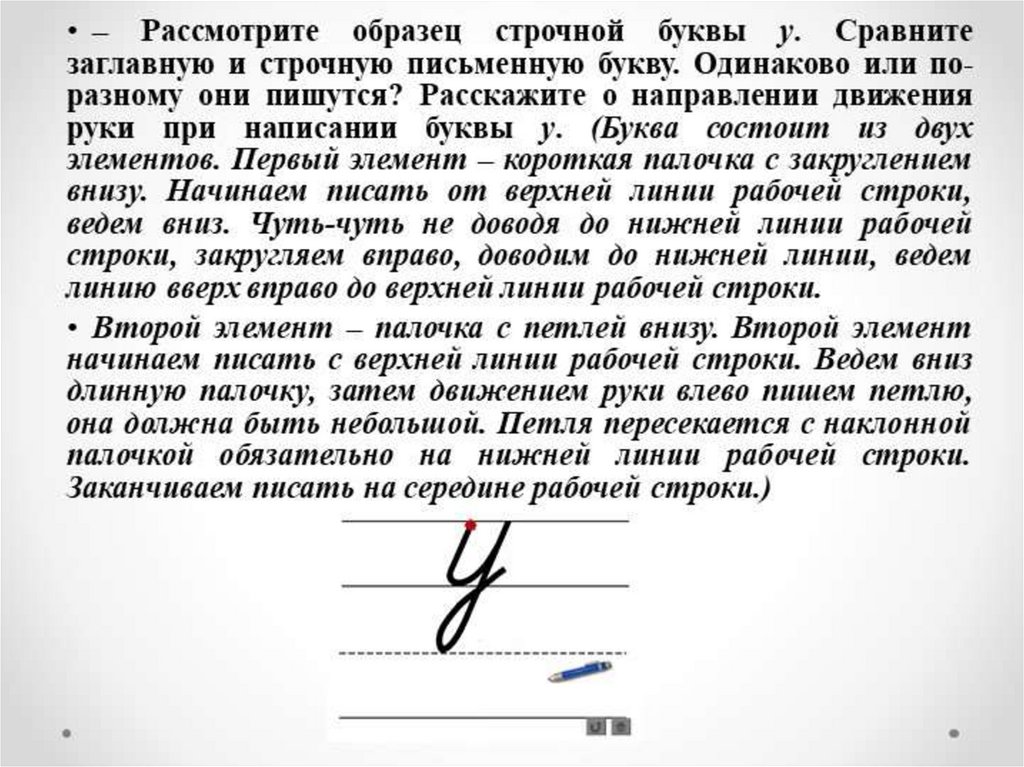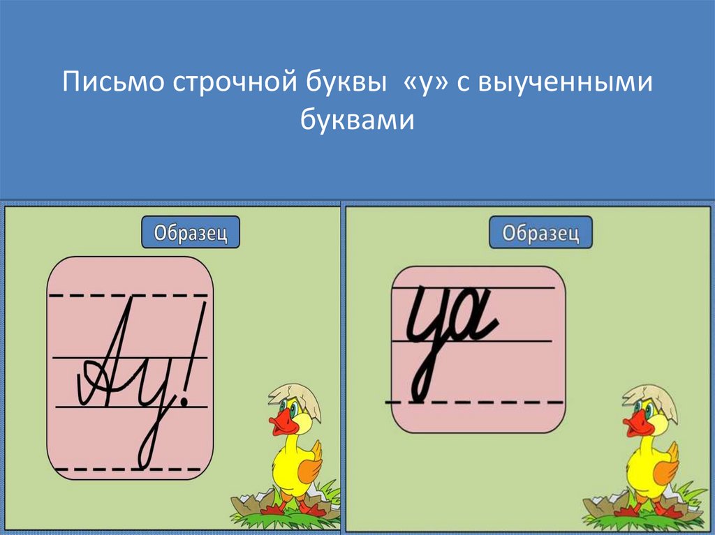 Написание строчной буквы у. Воспроизведение формы буквы и её соединения с другой буквой по алгоритму